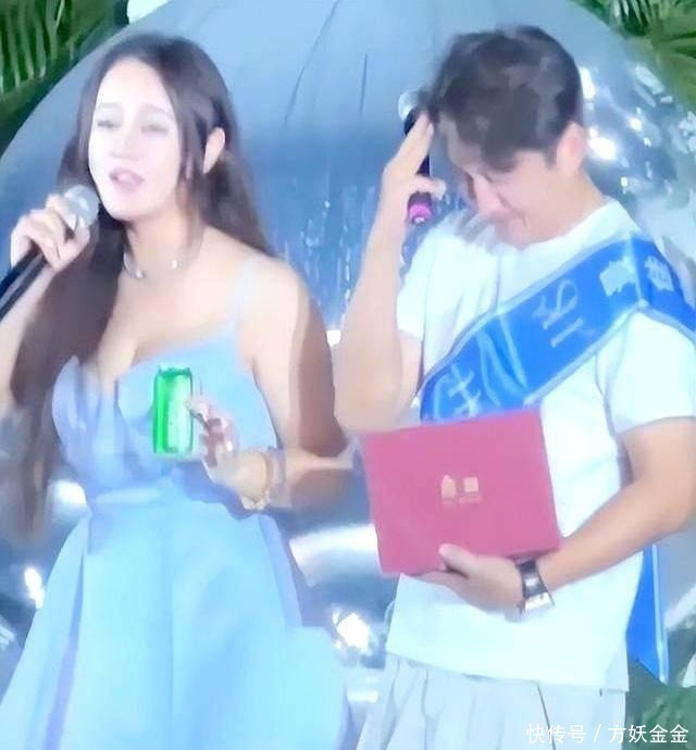 婚礼答谢酒会上,他中奖拉着冉小姐上台,结果冉小姐拎着一瓶啤酒,猛灌一口就干了。
